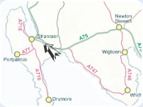 Travel Information BY ROAD - To the East lies the A75 and the main route to Dumfries, the Borders and England. To the North the A77 goes through the popular town of Ayr and terminates in the City of Glasgow. BY RAIL - Take train to Stranraer (Ferry Port) 2 miles from hotel, local bus or taxi services bring you to our front door. BY AIR - Prestwick Airport and Glasgow International Airport. Multimap Streetmap.co.uk